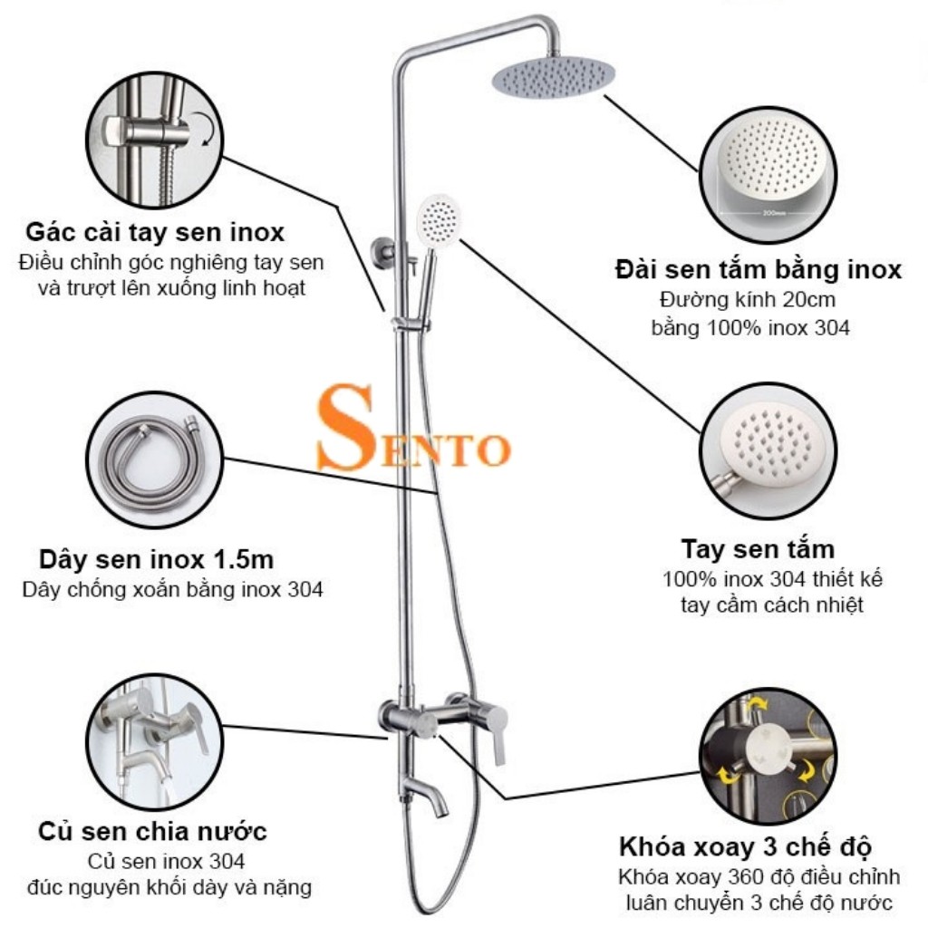 Giới thiệu Sen Cây Tắm Đứng Nóng Lạnh Treo Tường Inox304 SENTO Hàng Cao Cấp Nhập Khẩu Chính Hãng