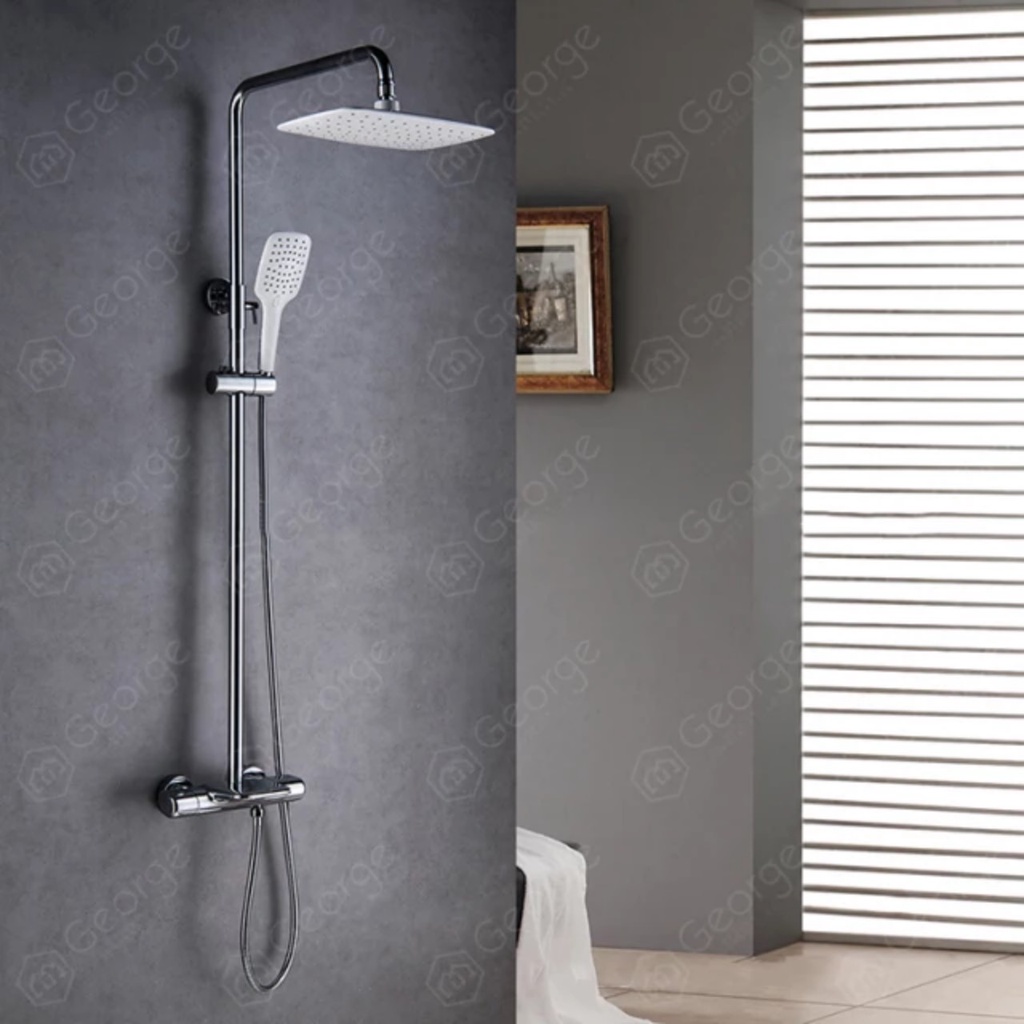 Chất liệu: Đồng thau mạ Crome sáng bóng.Chức năng: Tắm toàn thân bát sen đỉnh, tay sen cầm tay, vòi xả phụ. điều chỉnh nhiệt độ theo yêu cầu
