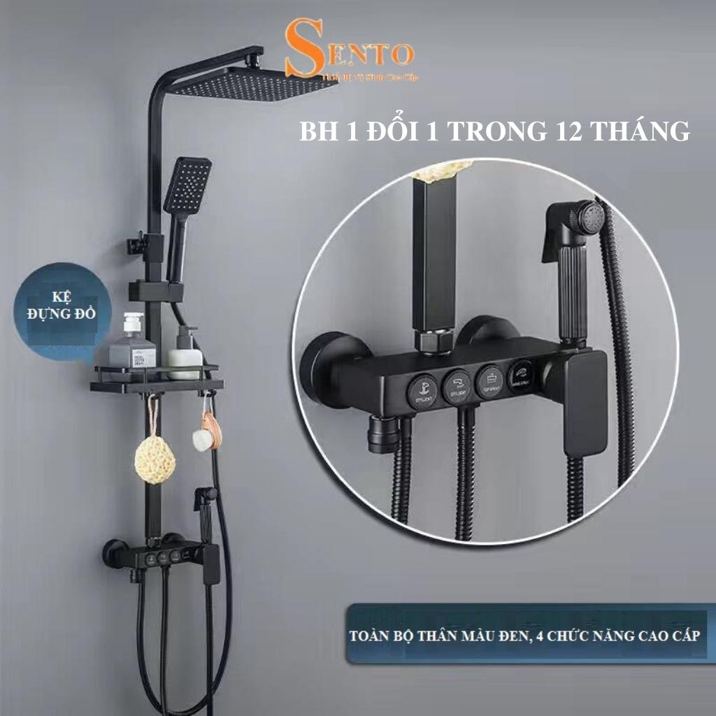 Sen cây tắm đứng SENTO bộ sen vòi vuông đen tăng áp nóng lạnh thiết bị nhà tắm ST28