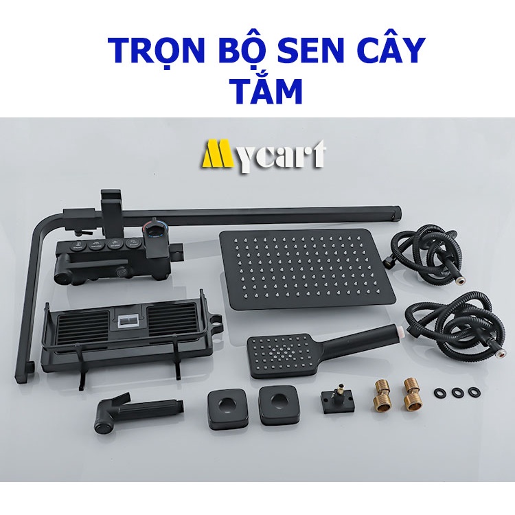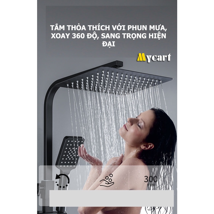 Bộ sen cây tắm đứng, Bộ sen vòi tắm đứng Đồng sơn tĩnh điện 4 phím bấm - Màu Đen.