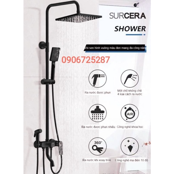 💫 💫💫Bộ sen cây tắm vuông Đa Năng nóng lạnh inox 304 sơn tĩnh điện màu đen: