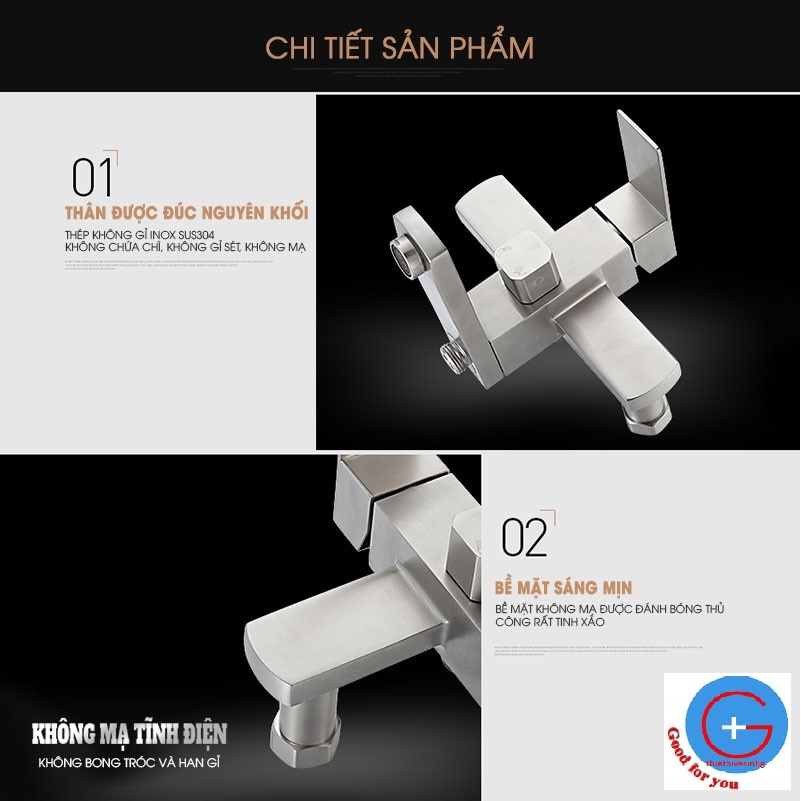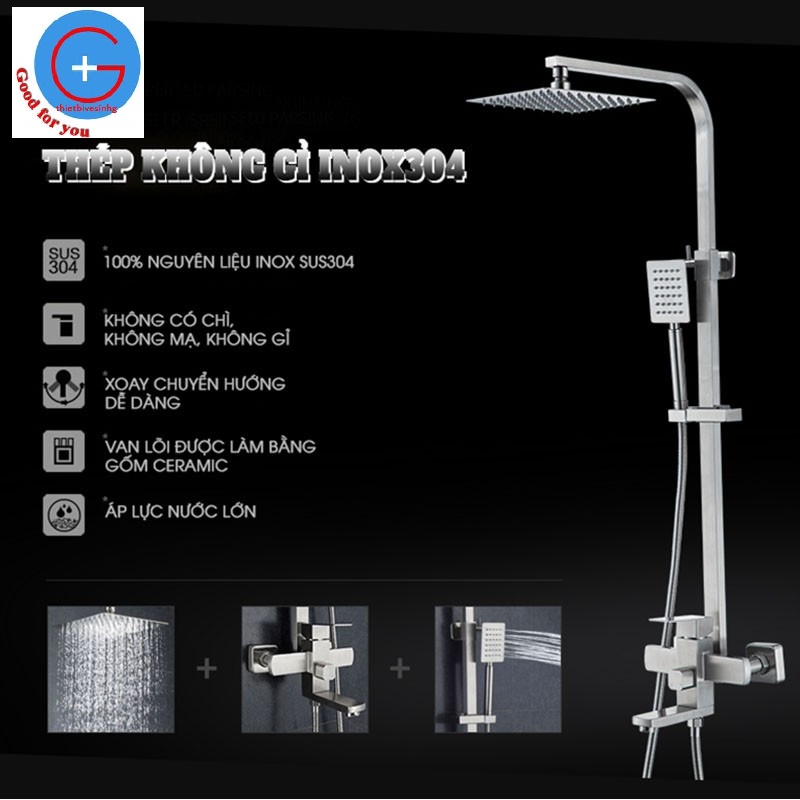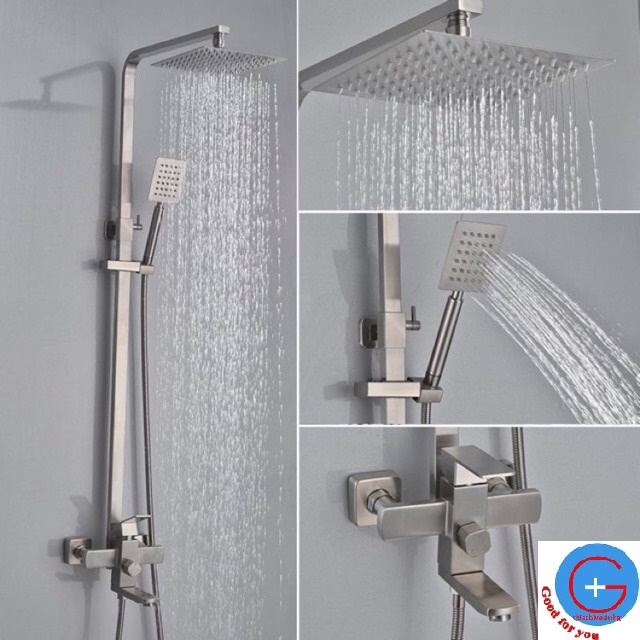 Bộ sen cây tắm nóng lạnh Inox SUS 304 vuông (Bảo hành toàn quốc 2 năm) Không chì rất an toàn