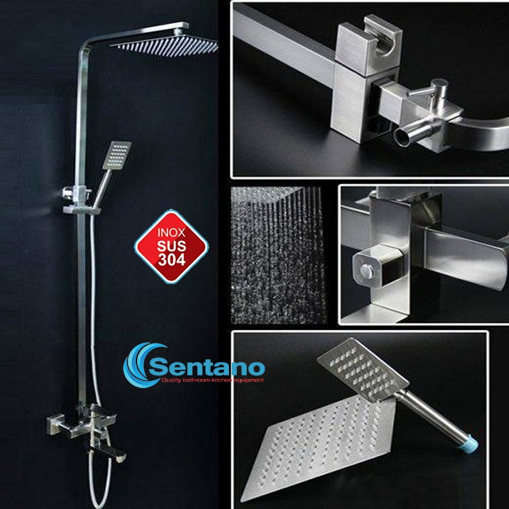 [HÀNG BỀN ĐẸP] Bộ sen cây tắm Nóng Lạnh inox 304 mờ SENTANO STN-101 kiểu vuông đúc dày chắc chắn