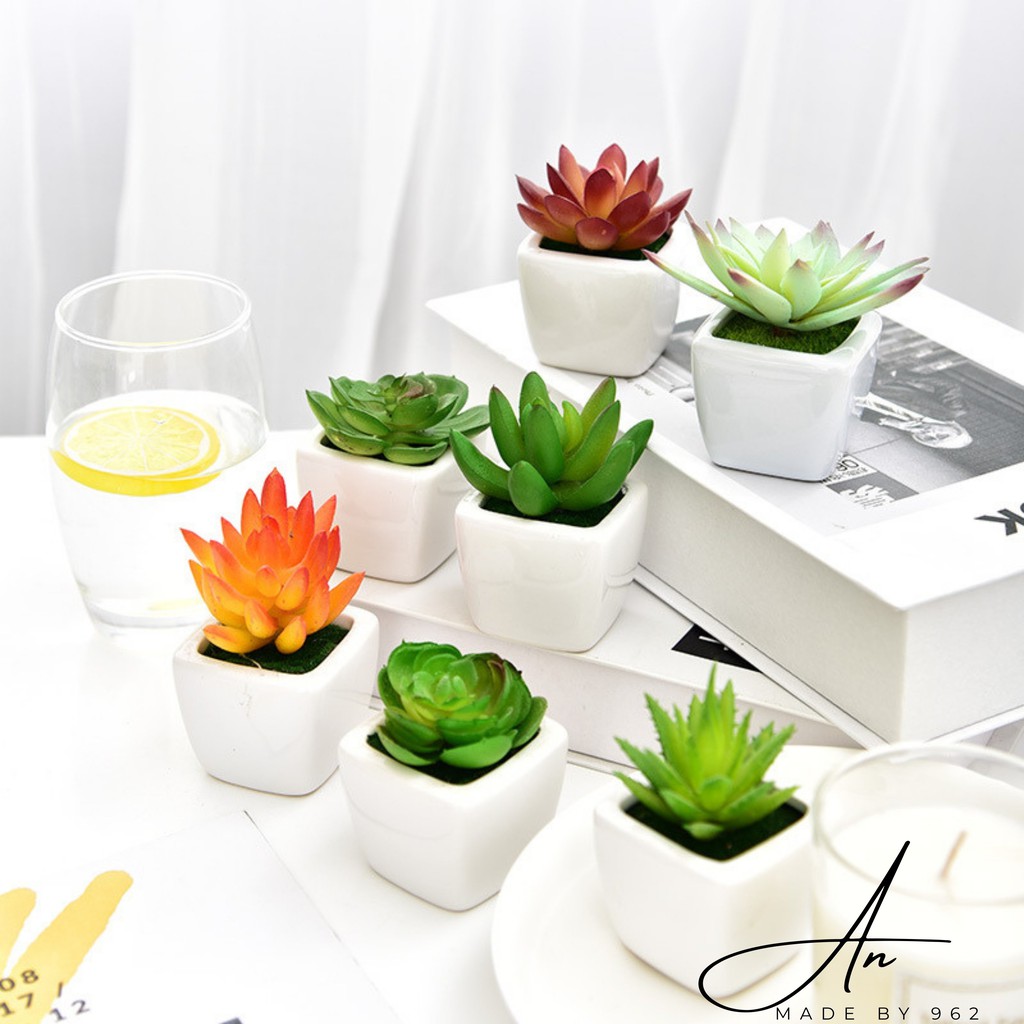 Nhà cửa & Đời sống > Làm vườn > Chậu cây || Sen đá chậu sứ trắng mini, cây giả nhân tạo giống thật decor trang trí phong cách Hàn QuốcCòn hàng