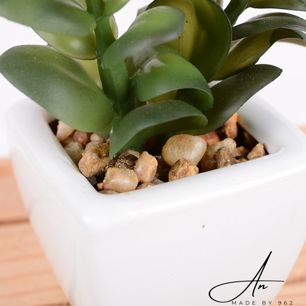 - Màu sắc: Chậu cây giả màu trắng & cây sen đá màu xanh lá