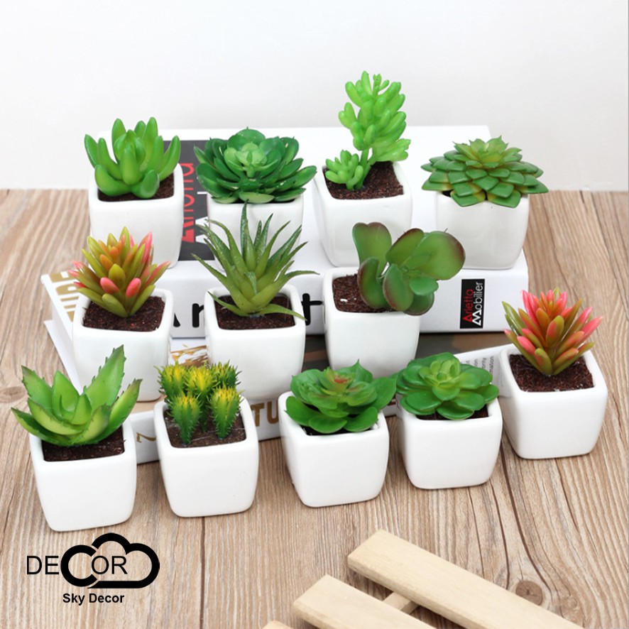 Nhà cửa & Đời sống > Trang trí nhà cửa > Hoa trang trí || Sen đá chậu trắng trang trí nhà cửa, chụp ảnh, decor cửa hàng - Sky DecorCòn hàng