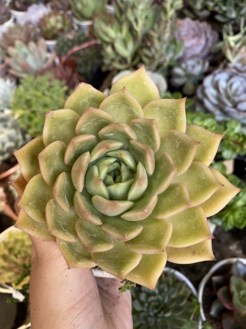 Sen đá Đế Vương Vàng có size tầm 9-12 cm. Sen đá Đế Vương Vàng thường được dùng để trang trí ở văn phòng, bàn học, cửa sổ hoặc trồng sau sân nhà đem lại sự tươi mát giúp mọi người thêm năng lượng cho một ngày làm việc.Bên shop em đều là những cây phat triển tốt đã được chăm sóc kĩ nên sống rất khỏe.