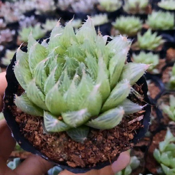 Các loài sen guốc có sự khác nhau về kích thước, hình dạng lá, các dấu vết trên bề mặt lá và thói quen sinh trưởng. Cây có lá màu xanh lá cây nhạt, xếp dày sát nhau và xếp quanh thân tạo thành hình hoa thị, đường kính lên đến 10 cm.✅ THÔNG TIN SẢN PHẨM