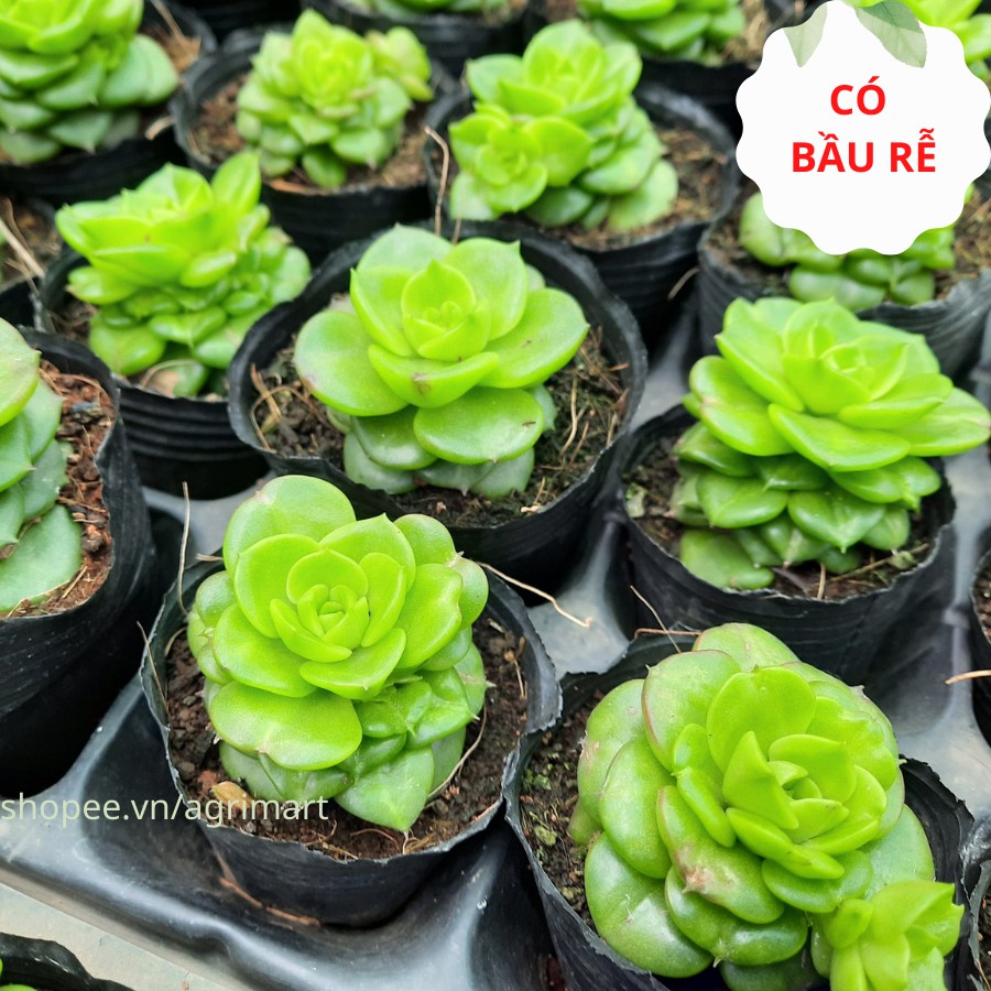 Sen đá hoa hồng hà lan màu xanh ngọc đẹp, cây sen đá có bầu rễ khỏe tại nhà vườn hoa sen đà lạt