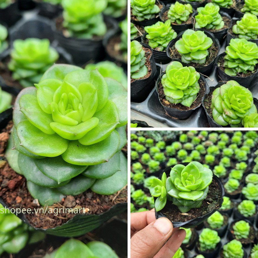Giới thiệu Sen đá hoa hồng hà lan màu xanh ngọc đẹp, cây sen đá có bầu rễ khỏe tại nhà vườn hoa sen đà lạt