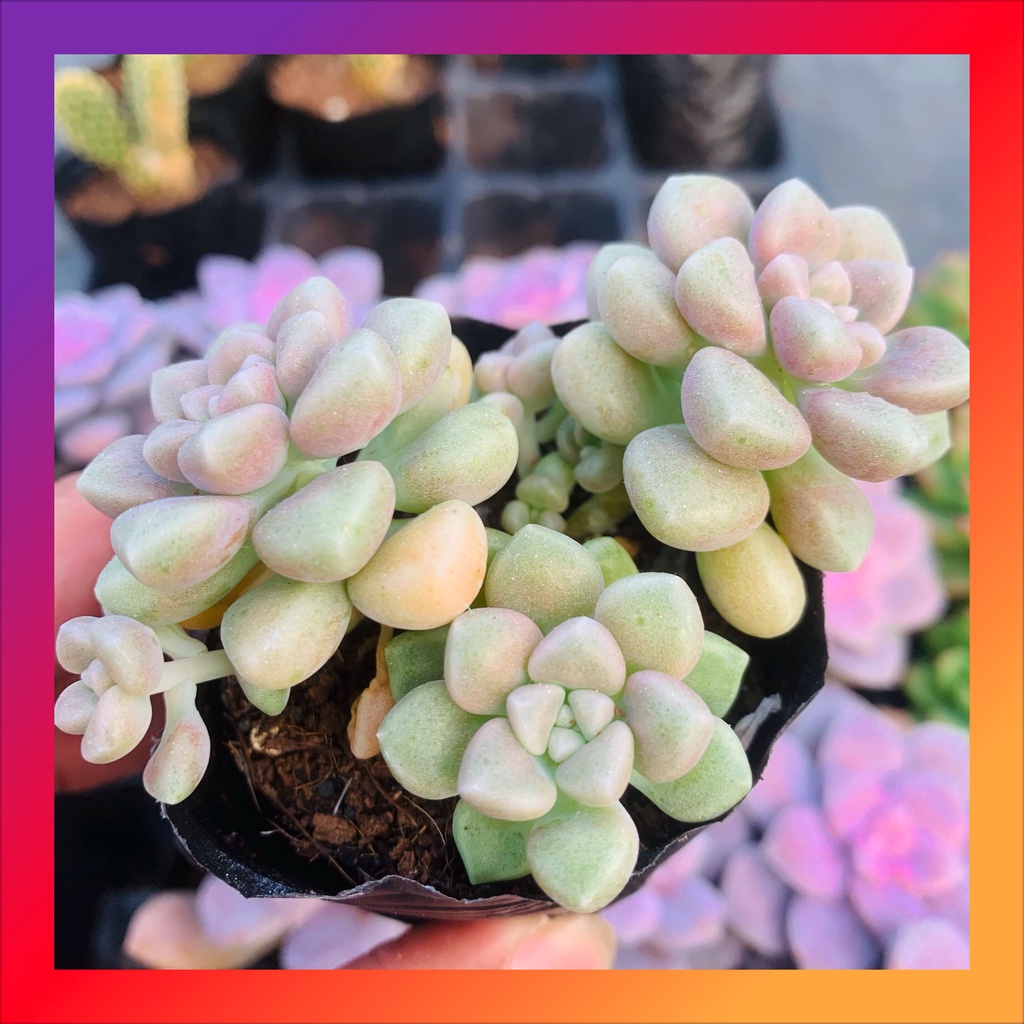 Sen đá kim tuyến size bé Đường kính 5-8cm.📮 Cam kết cây thuần mọi khí hậu, tự nhiên, không kích thuốc, màu; khoẻ đẹp đẹp như ảnh nhưng sẽ không giống 100% vì mỗi cây mỗi vẻ, màu sắc có thể thay đổi chút do vận chuyển không có ánh sáng, dáng cây được chọn ngẫu nhiên.