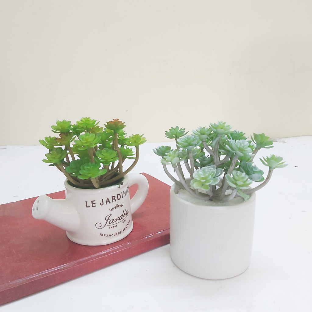 Nhà cửa & Đời sống > Làm vườn > Cây cảnh || Cây sen đá nhân tạo, cây giả thiết kế để bàn trang trí bàn làm việc văn phòng, nhà cửa, spa (Cây kèm chậu)Còn hàng