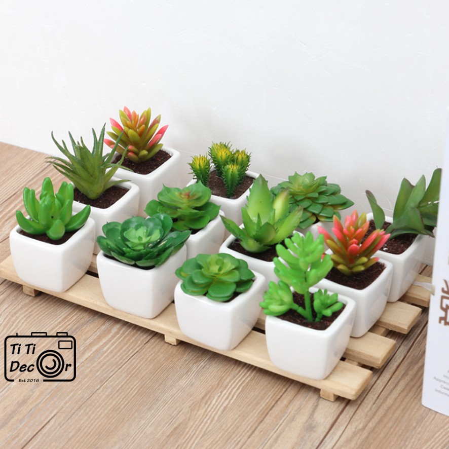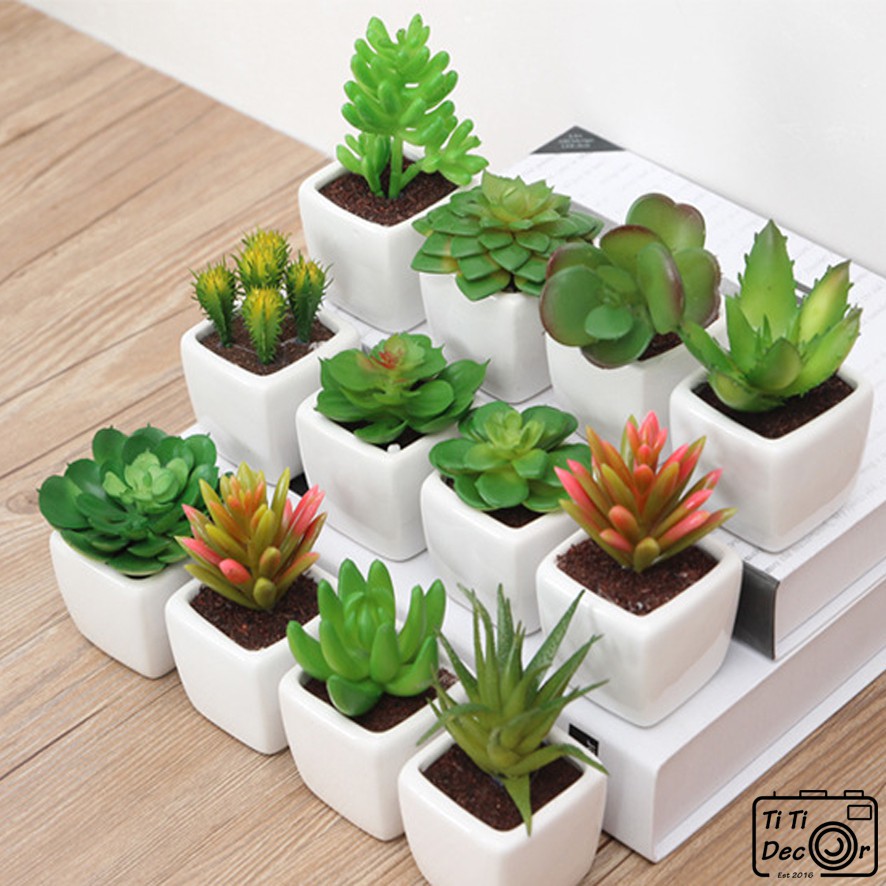 Nhà cửa & Đời sống > Làm vườn > Chậu cây || Sen đá nhựa chậu trắng trang trí chụp ảnh, decor nhà cửa, cửa hàng - TiTi DecorCòn hàng