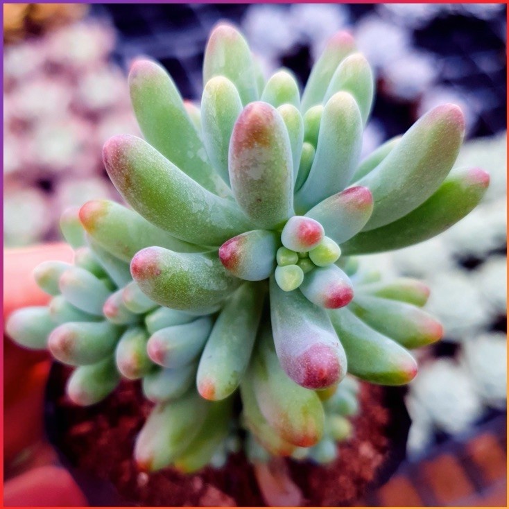 Sen đá, xương rồng thay đổi màu theo chế độ sáng nên có thể cây đi đường có thể màu sẽ bị nhạt đi, cây đủ ánh sáng, ít tưới sẽ lại đậm màu.