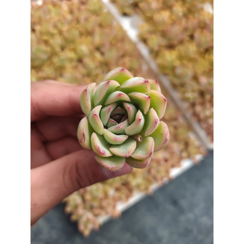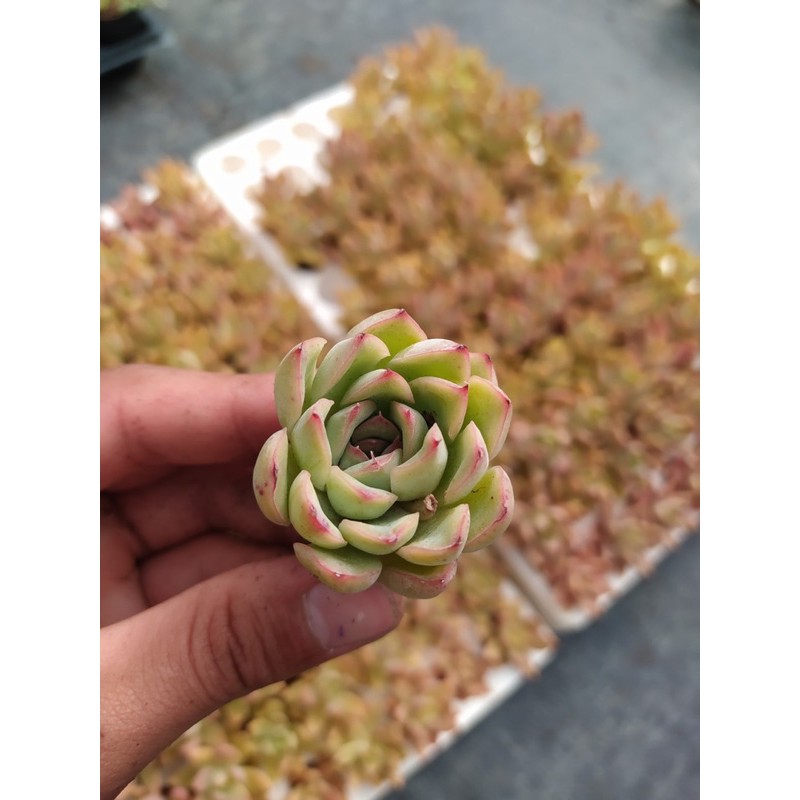 Sen đá viền hồng size mini đường kính 2,5-4 cm.Sen đá, xương rồng là loài cây tượng trưng cho tình yêu và sự may mắn. Sen đá có sức sống mãnh liệt, vì vậy mà người ta thường gửi gắm vào hoa sen đá những ước mơ và nguyện cầu một tình yêu bất diệt, trường tồn với thời gian.