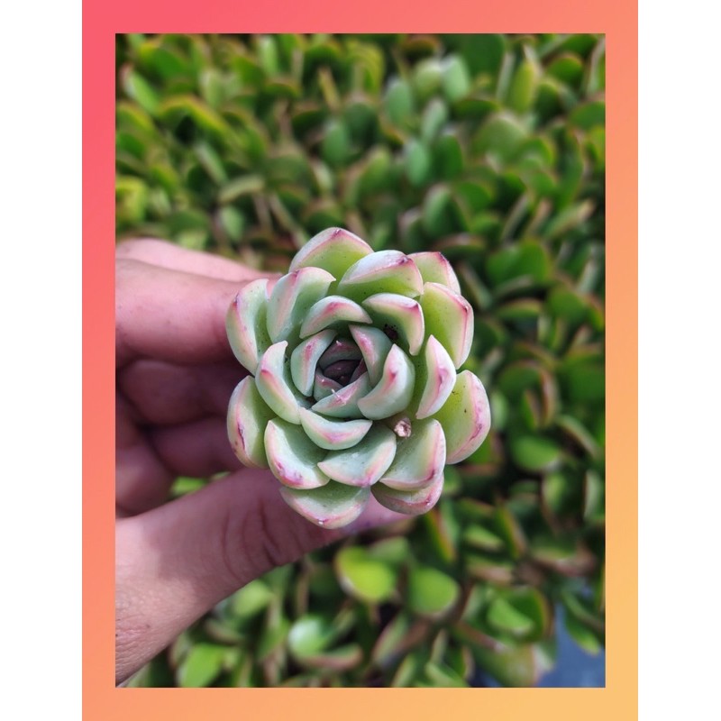 Sen đá viền hồng Đường kính cây 2,5-4cm.Sen đá, xương rồng là loài cây tượng trưng cho tình yêu và sự may mắn. Sen đá có sức sống mãnh liệt, vì vậy mà người ta thường gửi gắm vào hoa sen đá những ước mơ và nguyện cầu một tình yêu bất diệt, trường tồn với thời gian.