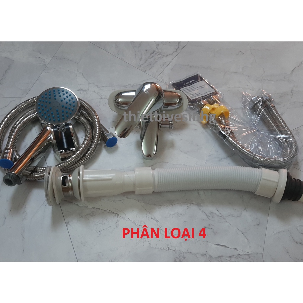 Phân loại 4: 01 vòi liền sen hợp kim + 2 dây cấp + dây, bát, cài sen + Xip phông sun nhựa