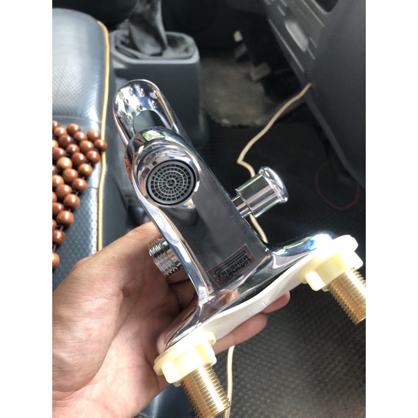 Vòi được lắp đặt vào chậu rửa mặt 2 lỗ với 2 chân nóng lạnh riêng biệt. Mặc dù đây là hàng trong phân khúc giá rẻ nhưng vòi vẫn được mạ bằng chất liệu crom sáng bóng, mang lại vẻ sang trọng cho sản phẩm.