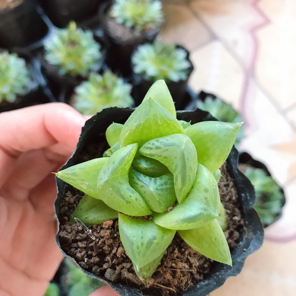 >Shop chắc chắn giao ĐÚNG LOẠI và cố gắng chọn cho khách hàng cây đẹp nhất ạ >Sản phẩm bao gồm cây và bầu đất nilong size 7x7cm, các bạn có thể so sánh đường kính cây và đường kính bầu đất để ước chừng !