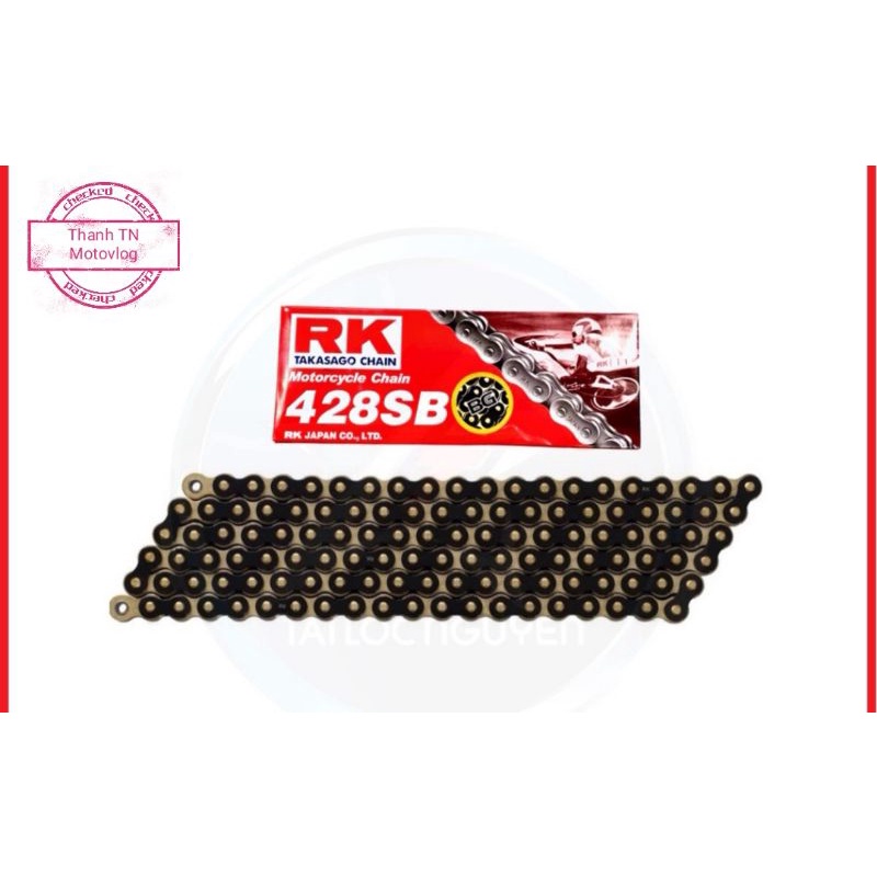 *Sên không phốt 428 SB Chính Hãng RK chain dòng Sên 428 SB không phốt cao su Màu Vàng Đen (Black/Gold). Sên không phốt 428 HSB Chính Hãng RK chain dòng Sên 428 HSB không phốt cao su Màu Vàng Đen (Black/Gold), là sản phẩm của RK chain, hãng sên đồng hành cùng những chiến thắng của đội đua Honda, HRC. RK Chain là một hãng sên có xuất phát điểm tại Nhật Bản được thành lập từ những năm 1932 nhưng hoạt động mạnh nhất tại Mỹ và luôn được anh em Biker Mỹ ưu ái lựa chọn.