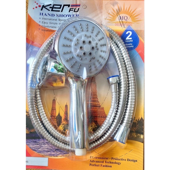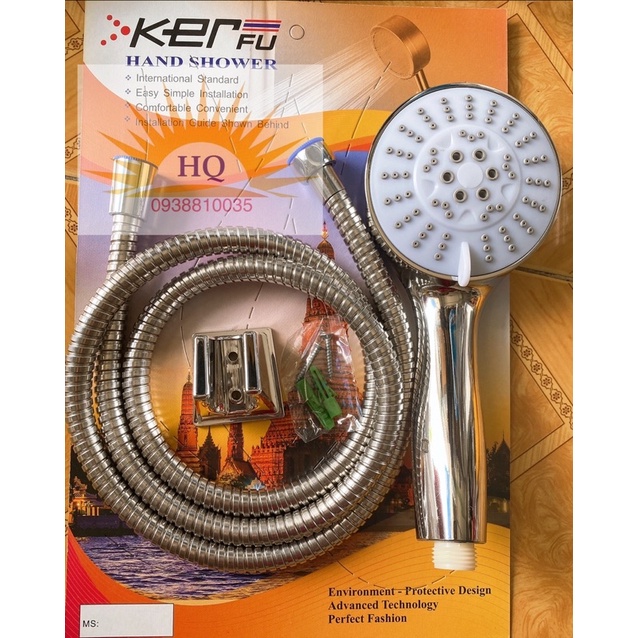 Bộ sản phẩm bao gồm: tay sen, dây sen và bát gác tay sen & tắc kê và ốc vít