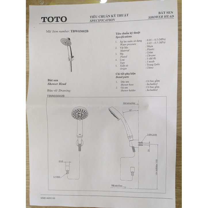 Thương hiệu: TOTO | Xem thêm các sản phẩm Vòi sen của TOTOMô tả ngắn