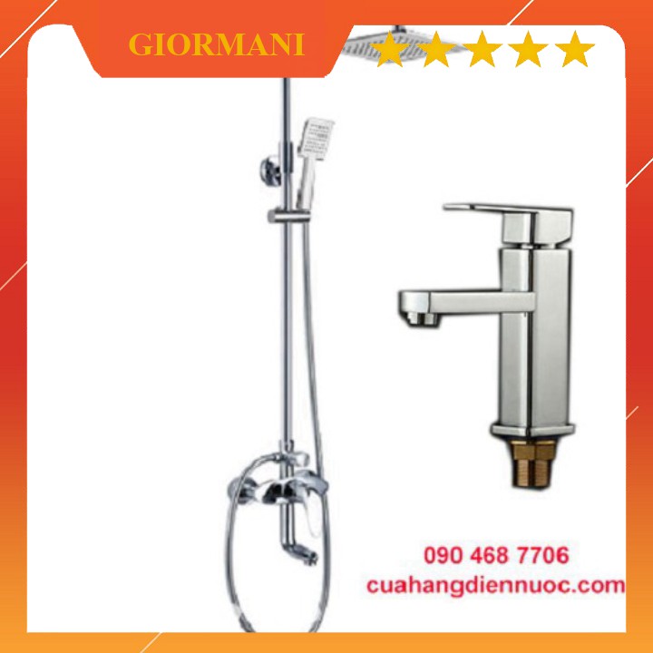 Sen tắm, Combo bộ sen cây vuông kèm vòi chậu rửa mặt vuông nóng lạnh cao cấp SC04-SNL16
