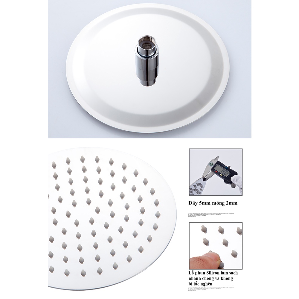 Bát sen dáng Tròn siêu mỏng có đường kính rộng cho diện tích phun mưa cực lớn, chắc chắn bạn sẽ được trải nghiệm cảm giác tắm gội cực đã. Có thể thay đổi chiều hướng & độ cao của bát sen theo ý thích đĩa xoay 360 độ cùng chốt thay đổi độ cao dễ dàng thao tác trên ống đứng. Tay sen nhỏ gọn với nhiều đầu phun tạo áp lực nước đều & mạnh. Củ sen thiết kế sang trọng với nút chuyển đổi chế độ nước dễ dàng thao tác cùng vòi xả phụ có thể xoay gấp vào trong cho diện tích đứng tắm rộng rãi & thoải mái hơn. Đầu vòi xả phụ có lưới tạo bọt khí giúp tiết kiệm nước khi sử dụng. Dây dẫn dài với lớp vỏ ngoài bằng inox 304 không xoắn tiện lợi khi sử dụng. Thao tác lắp đặt đơn giản, nhanh chóng bạn có thể dễ dàng lắp đặt. Chắc chắn tất cả mọi thành viên trong gia đình sẽ vô cùng thích thú với sản phẩm cao cấp nhiều tính năng này.
