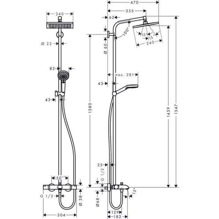 Hệ thống vòi sen Hansgrohe Crometta E 240 bao gồm