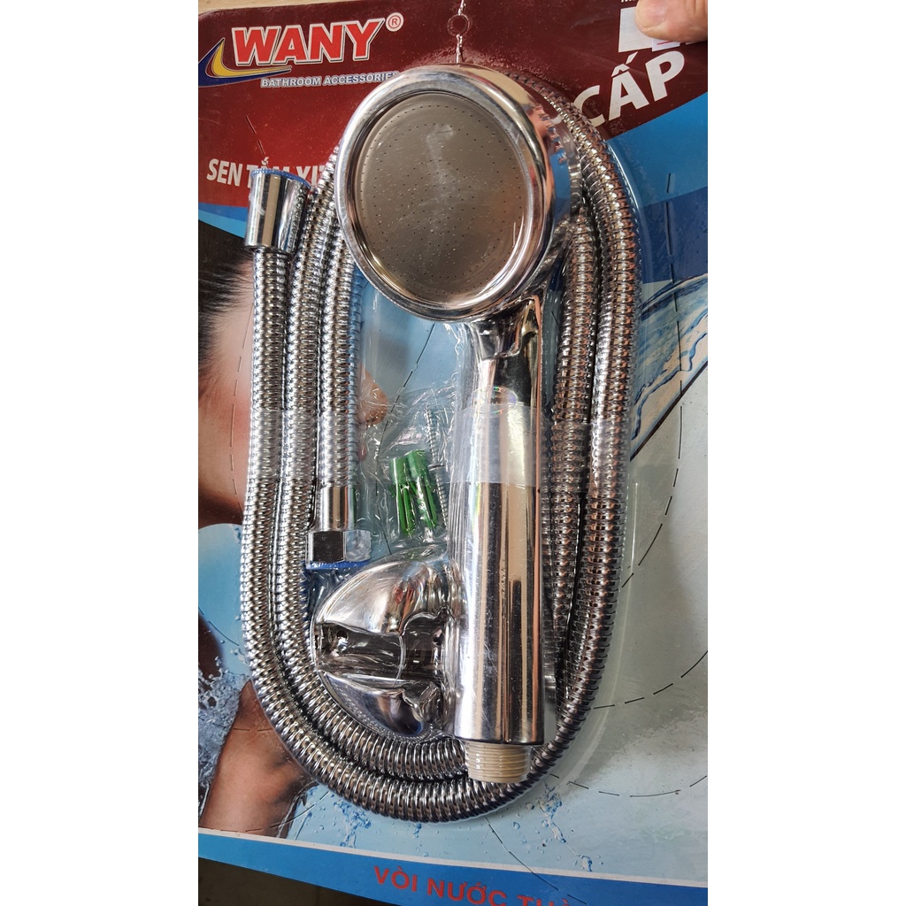 Tay Sen Tắm WANY Cao Cấp nhất bằng inox 304Bộ SP: Tay sen tắm bằng inox 304. dây sen bằng inox 304 loại tốt nhất, dây sen chống xoắn dài 1,5m, có màu sáng mờ, cài tay sen cũng bằng inox 304 đặc biệt đúc nguyên khối rất dày, phải dày gấp đôi so với các cài khác
