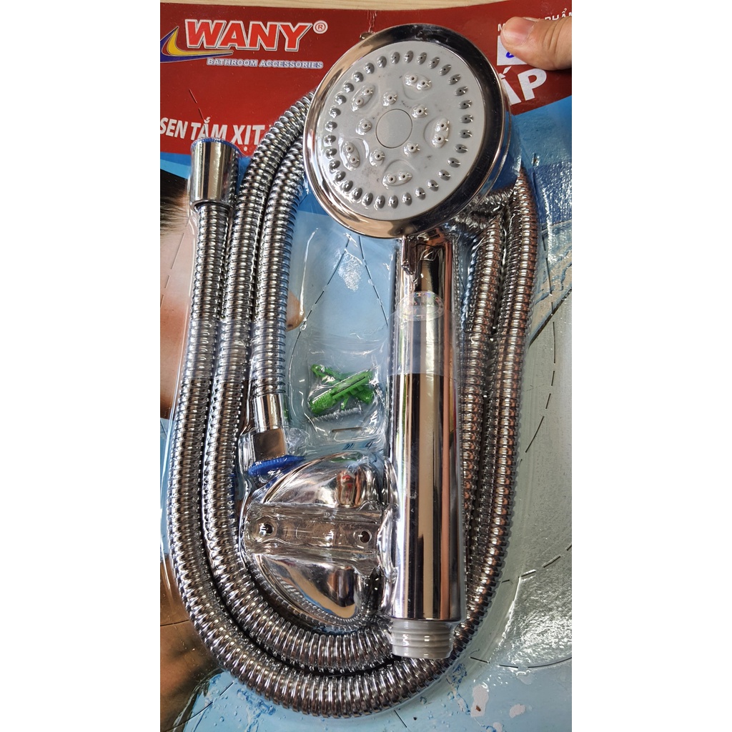 Tay Sen Tắm WANY Cao Cấp nhất bằng inox 304Bộ SP: Tay sen tắm bằng inox 304. dây sen bằng inox 304 loại tốt nhất, dây sen chống xoắn dài 1,5m, có màu sáng mờ, cài tay sen cũng bằng inox 304 đặc biệt đúc nguyên khối rất dày, phải dày gấp đôi so với các cài khác