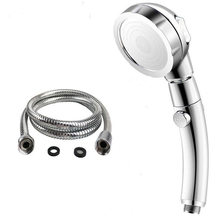Tay sen tắm tăng áp mạ bạc cao cấp xoay 360 độ và 3 chế độ nước tặng kèm dây cấp nước inox - QM047Thông tin sản phẩm :