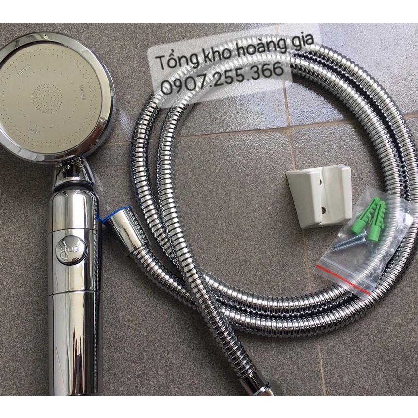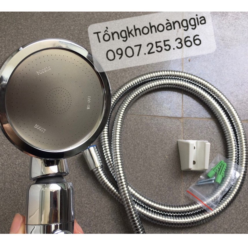 Tay sen tắm tăng áp , Vòi hoa sen tăng áp mạ Crom 3 chế độ có dây sen và đế cài