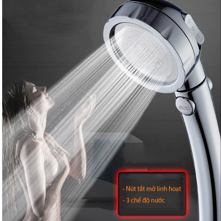 Nhà cửa & Đời sống > Đồ dùng phòng tắm > Vòi sen & vòi xịt vệ sinh || Tay sen tắm tăng áp , Vòi hoa sen tăng áp mạ Crom 3 chế độ có dây sen và đế càiCòn hàng