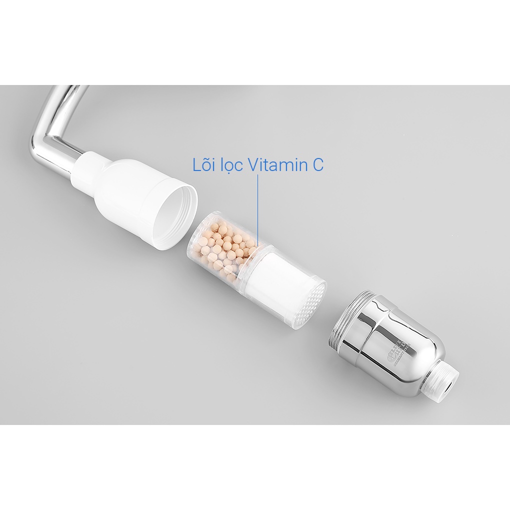 ● Sử dụng ống lọc chứa đá khoáng và vitamin C cho nguồn nước ra sạch hơn, tạo dòng nước nano chứa ion âm tươi mát, kích thích da thư giãn, tươi trẻ