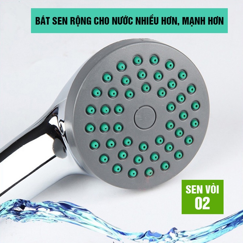 • Sen vòi 02: 1 chế độ, Chùm full chất liệu nhựa, đường kính bát sen: 6.5cm, chiều dài 23cm