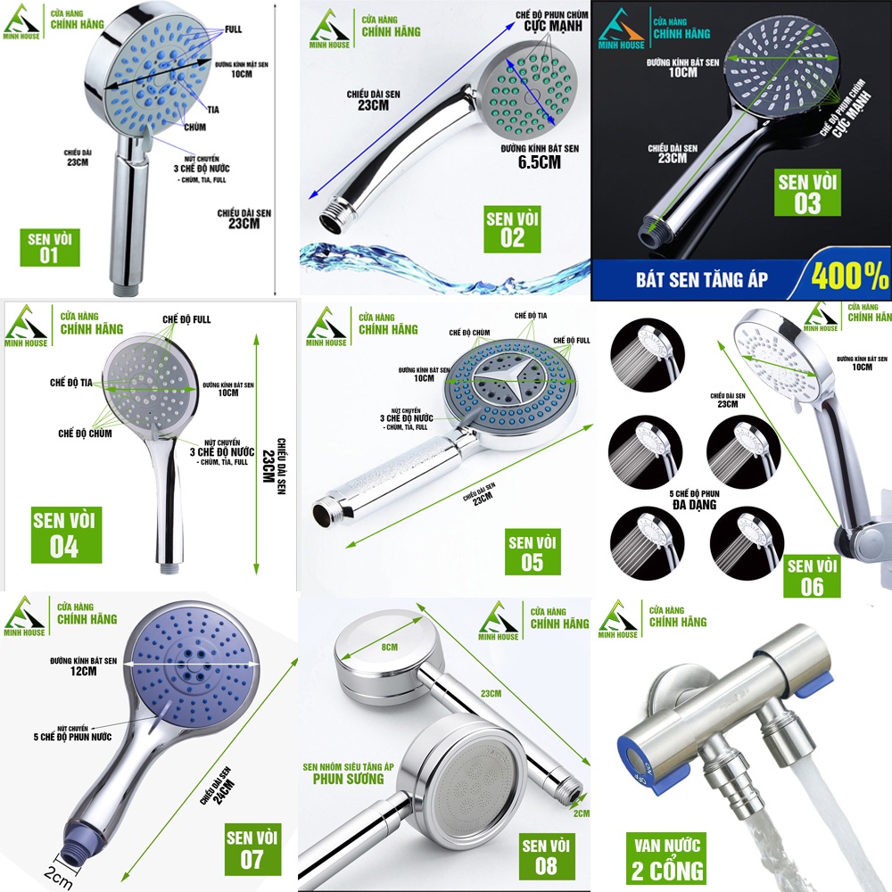 Nhà cửa & Đời sống > Đồ dùng phòng tắm > Vòi sen & vòi xịt vệ sinh || Sen vòi, bát sen, tay sen tắm tăng áp nhiều mã, đa dạng chế độ phun, phụ kiện nhà tắm Minh HouseCòn hàng