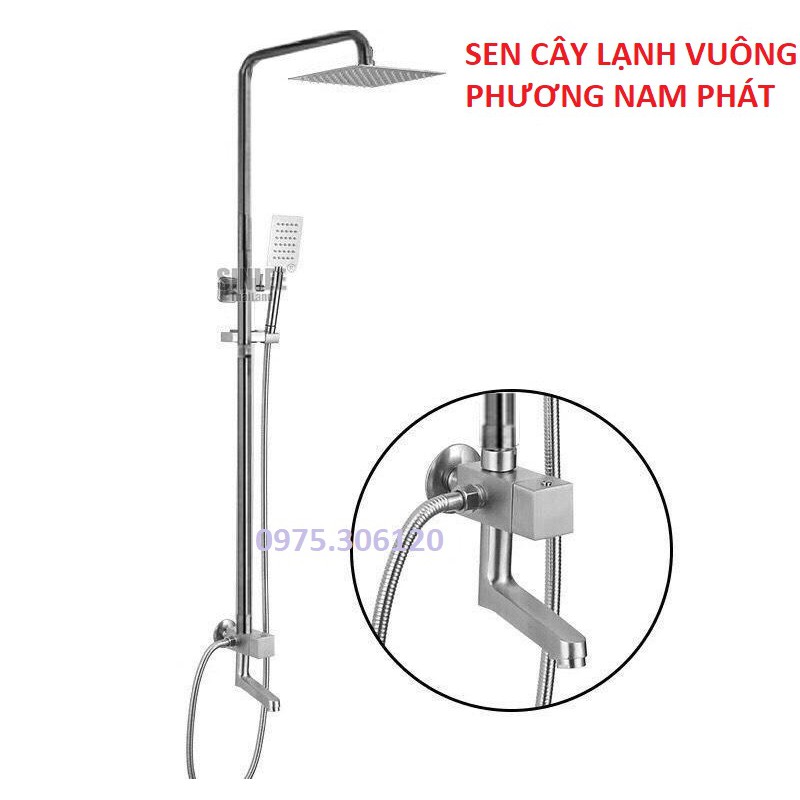 [SEN VUÔNG ĐẸP] Bộ Sen Cây Tắm Đứng Lạnh INOX 304 N1011 và tay sen tắm và dây sen DÙNG CHO NHÀ CHỈ CÓ ĐƯỜNG NƯỚC LẠNH