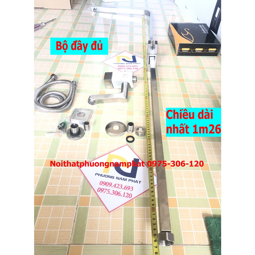 -Ống dẫn nước đứng đúc từ inox 304 cao 1m25, có thể kéo lên hạ thấp trong khoảng 50cm, có chốt cố định, Nhiều shop bán ống cao 1,1m thốt, Khách đọc kĩ mô tả để phân biệt