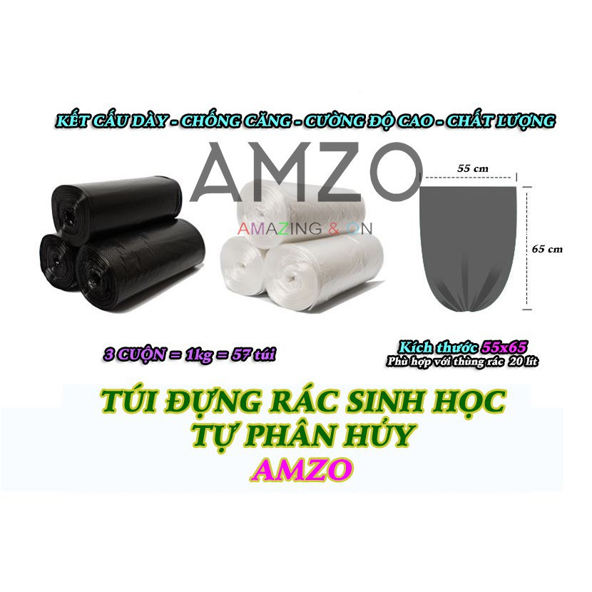 Giới thiệu sét 03 cuộn (1kg) túi đựng rác đen, bao rác tự phân hủy sinh học AMZO