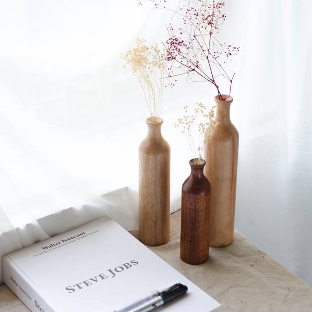 Những món đồ bằng gỗ thường mang lại cảm giác ấm áp, gần gũi với thiên nhiên, không cầu kỳ nhưng vẫn tinh tế, rất mộc mạc nhưng không kém phần độc đáo. Với một lọ hoa gỗ trang trí, bạn có thể cắm hoa cũng đẹp mà không cắm hoa cũng đẹp. Tuy nhiên thì lọ hoa gỗ không chứa nước để cắm đươc hoa tươi. Nó chỉ phù hợp với hoa khô, hoa giả hoặc cành tươi cắm khô.THÔNG TIN CHI TIẾT