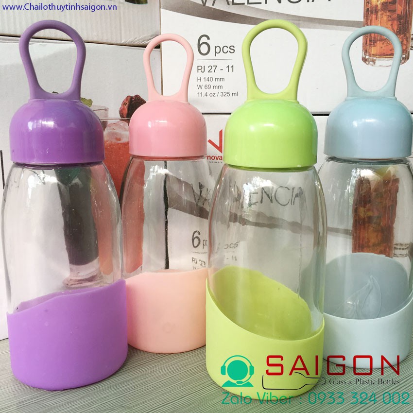 Nhà cửa & Đời sống > Bộ đồ bàn ăn > Bình nước & phụ kiện || Set 04 Chai Thủy Tinh Giọt Nước Silicon 350mlCòn hàng