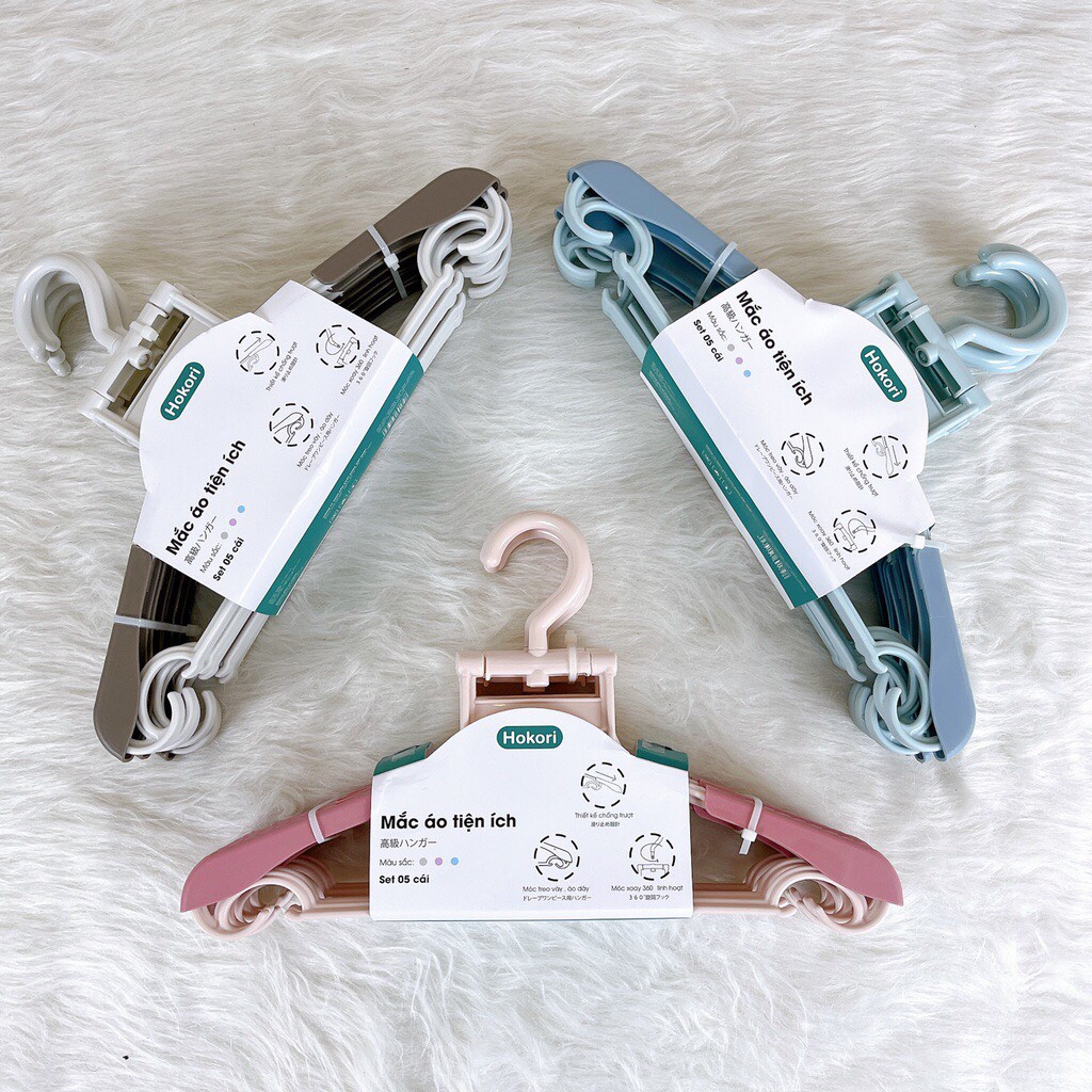 Giới thiệu Set 05 móc treo quần áo người lớn Hokori cao cấp nhựa Việt Nhật 2832,mắc treo quần áo, móc phơi đồ người lớn tiện lợi_MC