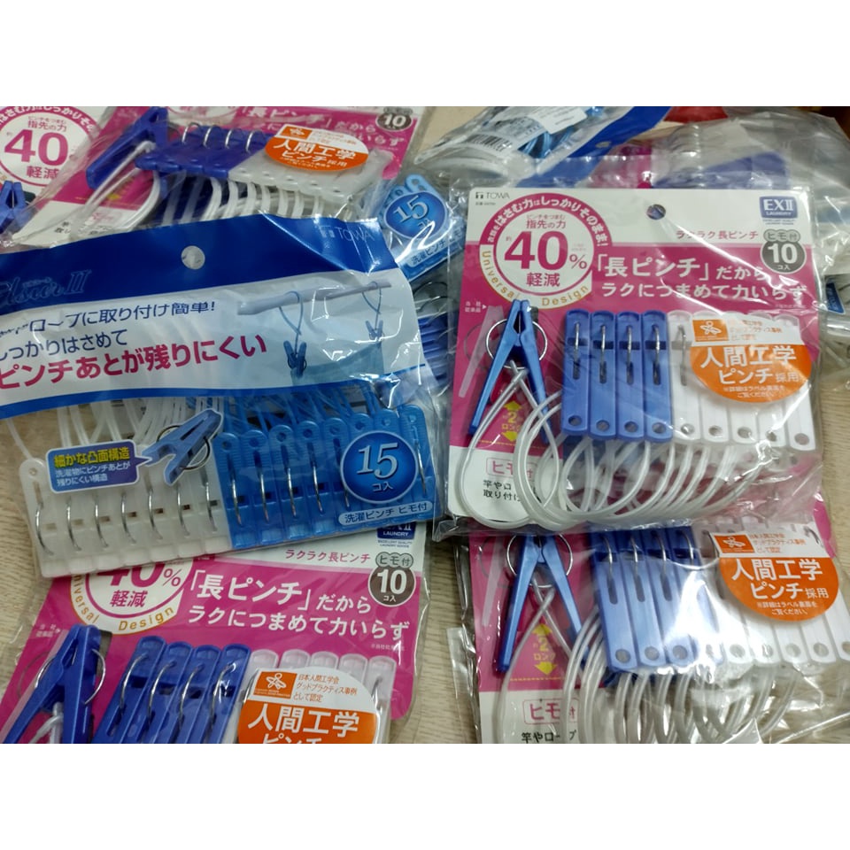 Set 10/ 15 kẹp quần áo có dây treo cực kì tiện lợi- hàng nhập khẩu từ Nhật Bản, sản xuất tại Việt Nam
