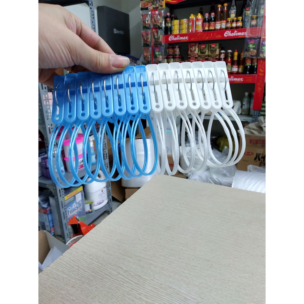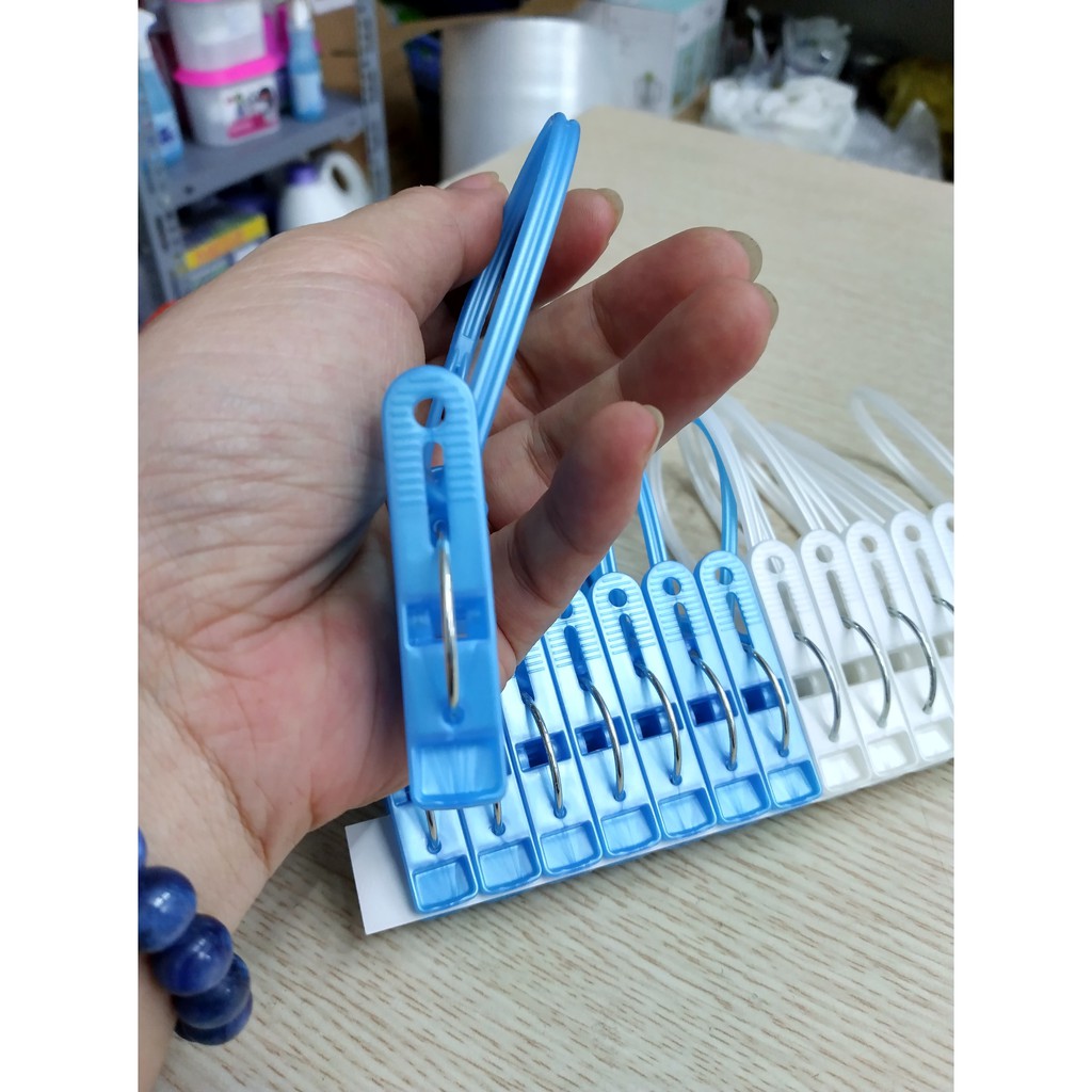 Hàng sản xuất tại Việt Nam, vượt cả ngàn dặm rồi lại quay về chốn cũ... set kẹp quần áo thần thánh chỉ cần sắm vài set là tha hồ để chị em phơi đồ nhỏ, đồ bé, tất tai các kiểu...Các móc được thiết kế có dây treo, có thể lồng kẹp qua dây phơi hoặc bất kỳ chỗ nào là chúng ta đã có 1 chỗ phơi đồ thật tiện dụng.