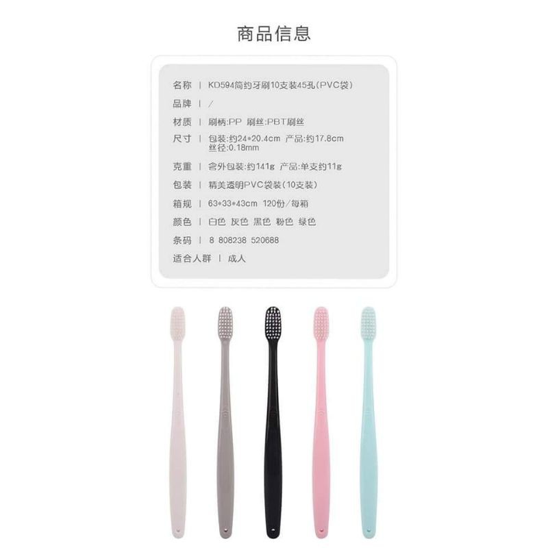 Set bao gồm 10 cái bàn chải nhiều màu tặng kèm túi zip.Giá #45k