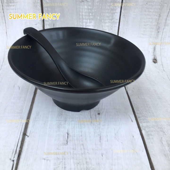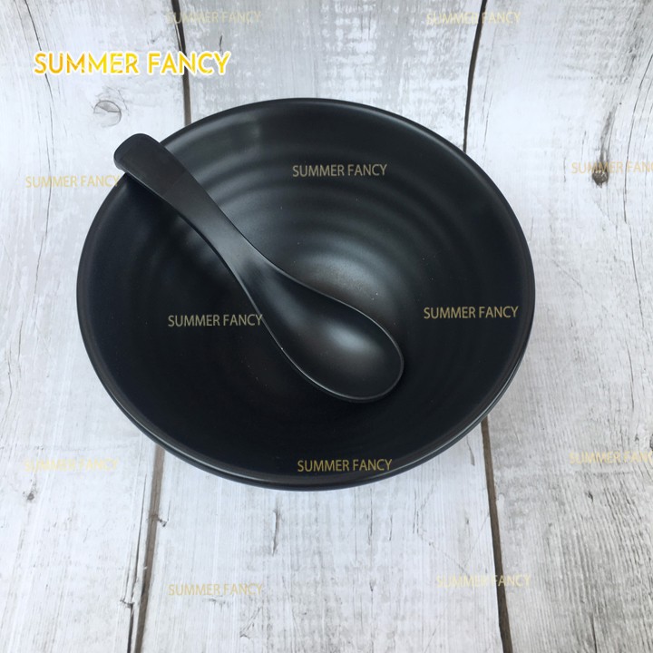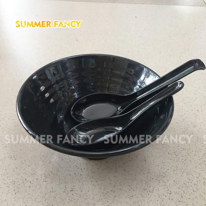 Nhà cửa & Đời sống > Bộ đồ bàn ăn > Tô || set 10 bát xoắn 16cm và 10 muỗng nhựa melamine phíp đen nhám, đen bóng cùng bộ, đựng chè, mì phở F-TOX17N + NO25NCòn hàng