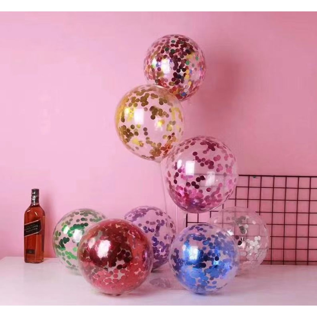 Set 10 Bóng Bay Trong Suốt Sequin 30Cm