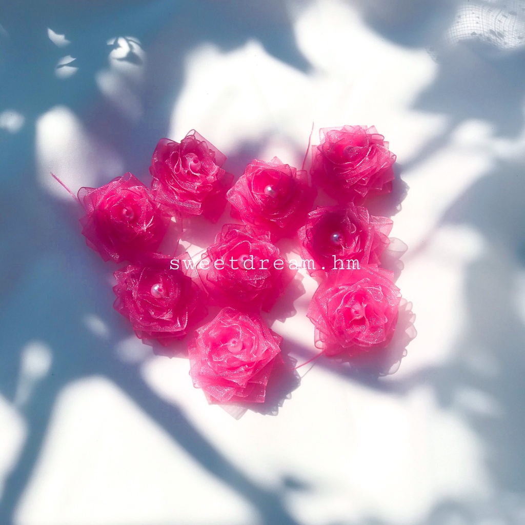 SWEET DREAM HANDMADE cam kết Set 10 bông hoa hồng ruy băng đính ngọc, dùng để trang trí, làm hoa bó, hoa cành: