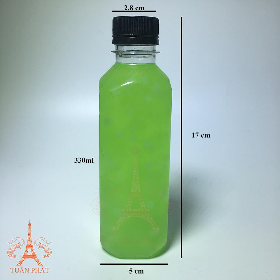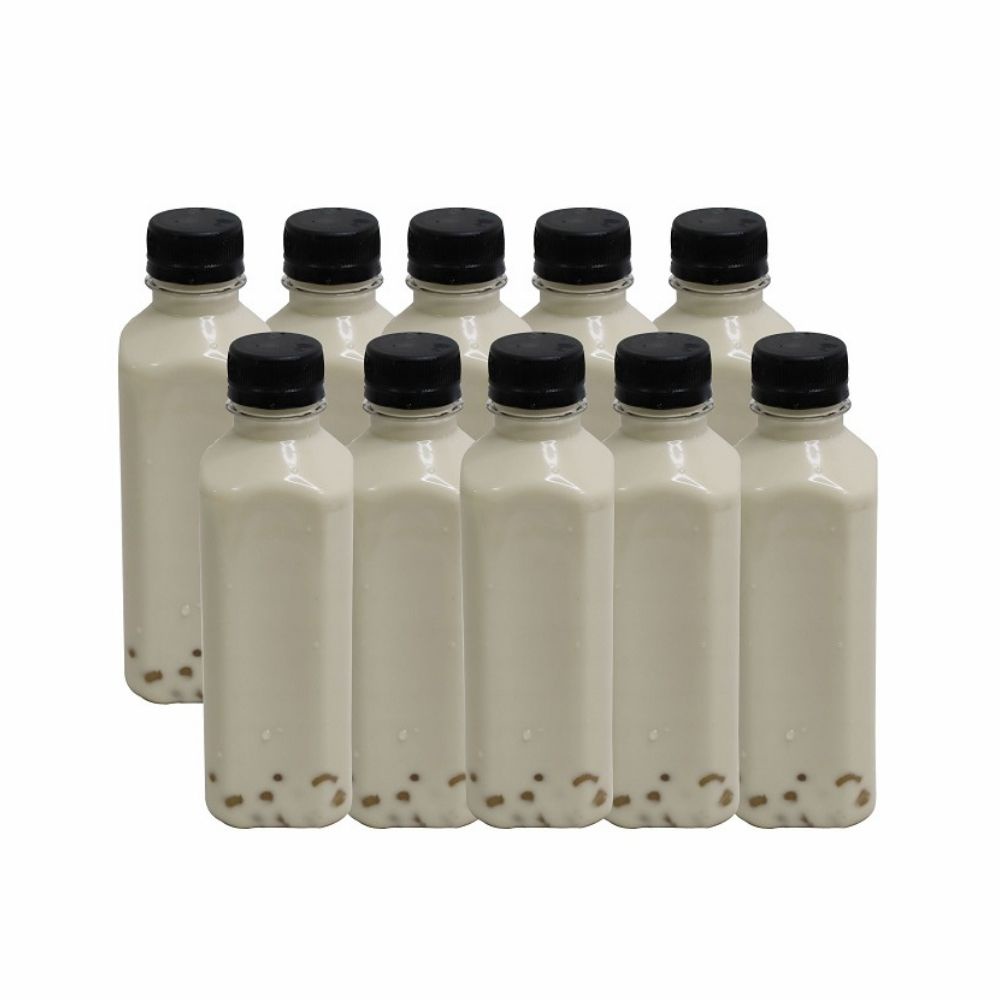 set 10 chai nhựa vuông 330ml nắp đen làm trà thái trà sữa nhựa PP cao cấp